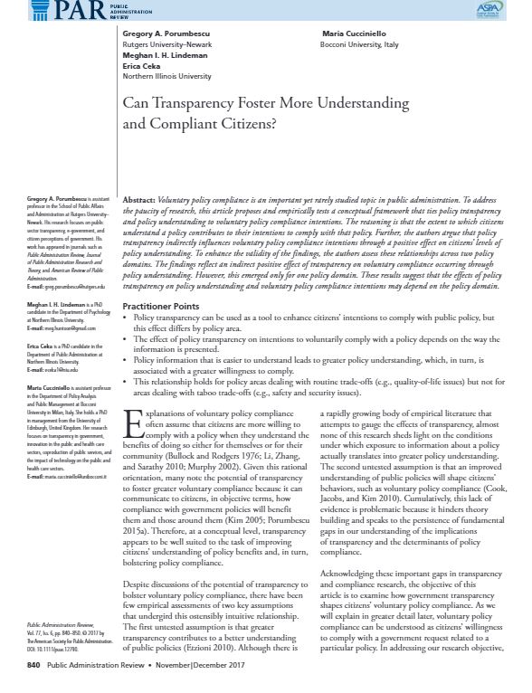 Cucciniello, M., Porumbescu, G. A., & Grimmelikhuijsen, S.