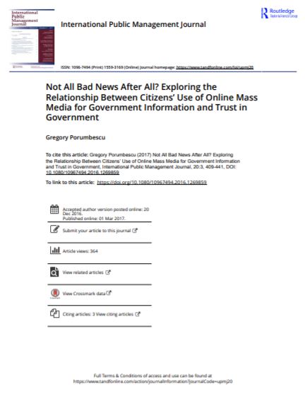 When assessing the potential of information and communications technology (ICT) to improve relationships between citizens and their government, public management research tends to focus on government applications of ICT and neglects implications resulting from private actors use of ICT. Given the rapid growth in private online mass media outlets over the past decade, this negligence is problematic because it biases our understanding of the implications of ICTs for citizens’ relationship with government. This paper discusses how the proliferation of online mass media outlets may influence citizens’ evaluations of their government. In doing, two key points are distilled. First, as the number of mass media outlets increase online, citizens will tend to access information that reaffirms th..