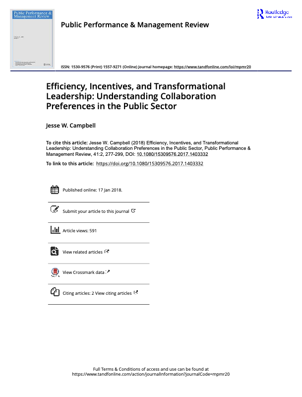Efficiency, Incentives, and Transformational Leadership: Understanding Collaboration Preferences in the Public Sector
