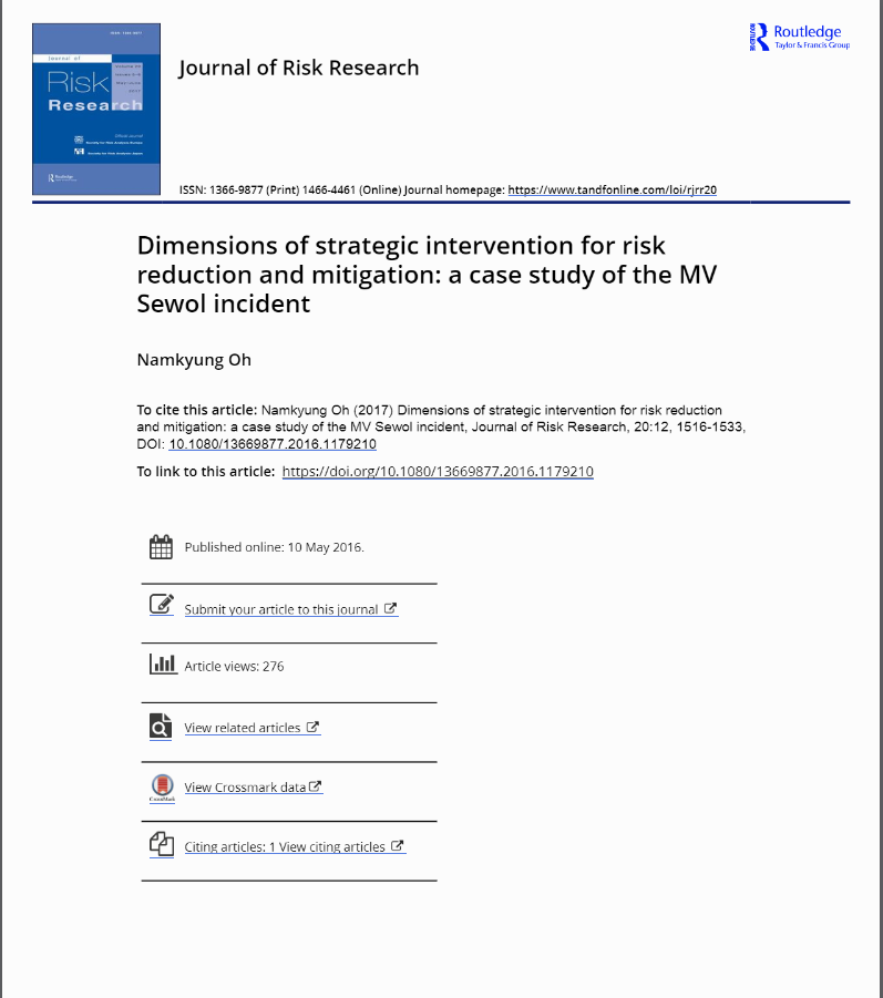 Dimensions of strategic intervention for risk reduction and mitigation: a case study of the MV Sewol incident