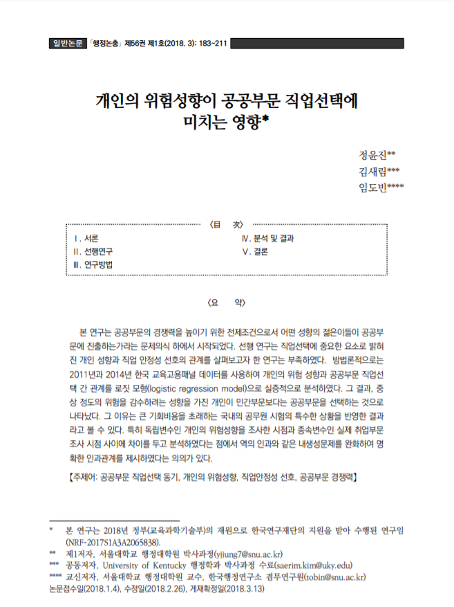 Korean Society and Public Administration 23(2).